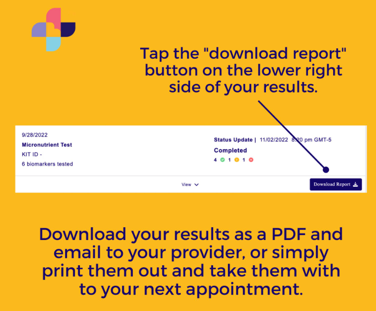 You can easily share your results with your physician by downloading the PDF from your HIPAA-Compliant Healthyr account portal.
